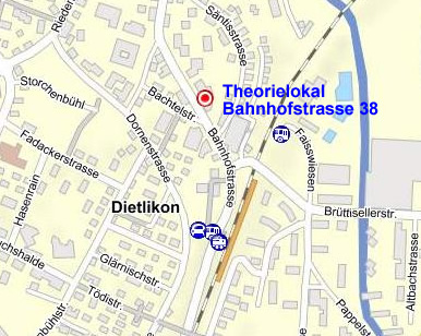 - Das Theorielokal liegt im Zentrum von Dietlikon und kann leicht zu Fuss vom Bahnhof her erreicht werden.